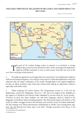 2. Sri Lanka recognised as a sovereign state from early times. It had diplomatic relations