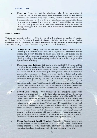 missions and operations undertake by SLN. In addition, Naval Fleet Training will