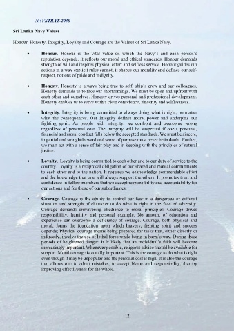 Honour, Honesty, Integrity, Loyalty and Courage are the Values of Sri Lanka Navy.