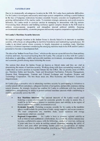 Key Maritime Interests. The national interests of Sri Lanka would entail