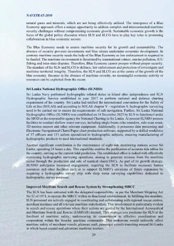 and the highest performing port in South Asia accordance to the review of UNCTAD in year 2022. SLNHO anticipates increased engagement, requiring the SLN to facilitate necessary human
