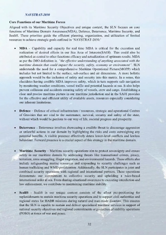 functions of Maritime Domain Awareness(MDA), Defence, Deterrence, Maritime Security, and