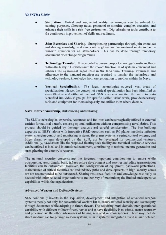 advantages. Hence, budgetary allocation to invest in R&D will not go in wain for SLN and the and sharing knowledge and assets with regional and international navies to have a