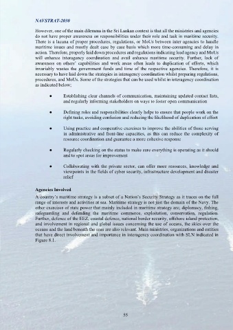 a common goal. For example, there is a set procedure between the SLN and the There is a lacuna of proper procedures, regulations, or MoUs between inter agencies to handle
