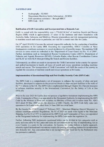 related to the suppression of Narcotic drugs trafficking at the sea. Meanwhile, domestic search and rescue. The incorporation of ‘SAR Convention’ will fulfil the needs of the country to