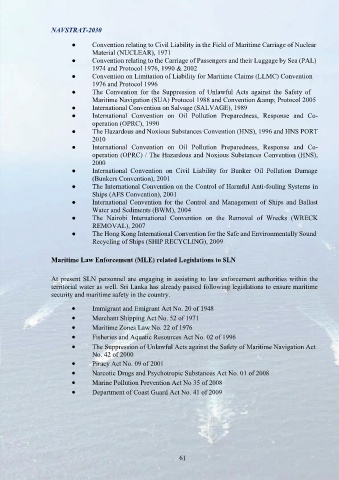 Sri Lanka is not party to the following IMO instruments; Maritime Law Enforcement (MLE) related Legislations to SLN