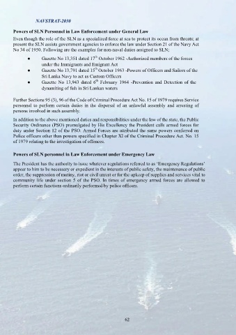 No 34 of 1950. Following are the examples for non-naval duties assigned to SLN;