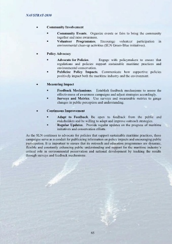gathering public support and understanding of maritime activities, environmental conservation and environmental clean-up activities (SLN Green-Blue initiatives).