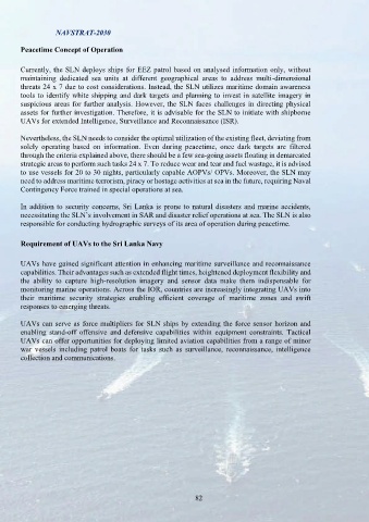 threats 24 x 7 due to cost considerations. Instead, the SLN utilizes maritime domain awareness