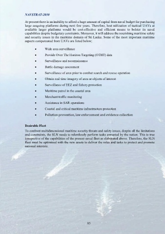 their maritime security strategies enabling efficient coverage of maritime zones and swift and constraints, the SLN needs to relentlessly perform tasks entrusted by the nation. This is true